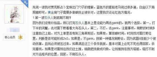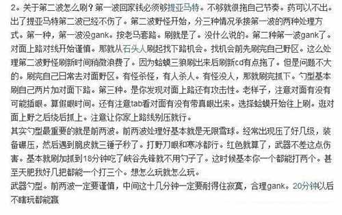 这位玩家还说出了他对勺型打野的很多个人理解。比如黄金局勺子需要多做眼防止被针对;第一波石头人到底刷不刷;刷野的时候多注意自己上路;对方上单是否有到三角草附近;关于第二波怎么刷等等。