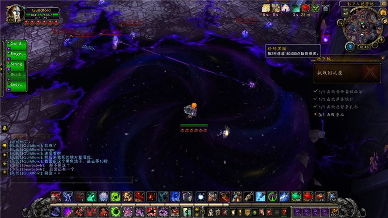 最后我在巨大的虚空池里找到了。在黑色池子里每站1秒都会获得1层“压力骤增”debuff,10层后转为“粉碎暗影”debuff。