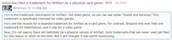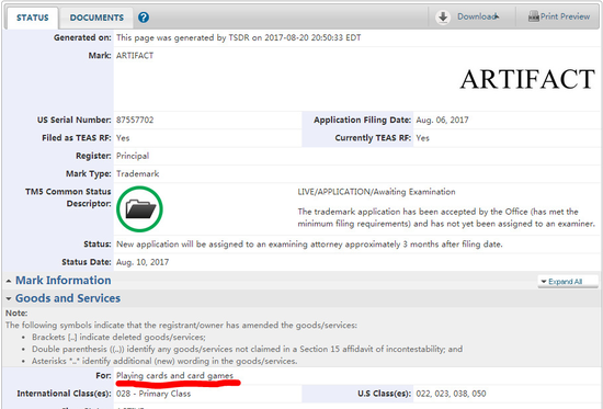 但据最新的消息显示就在前几天Valve已经为Artifact向美国专利和商标局提交了商标注册申请,其中一个专门是为“Card Game”注册的,也就是说,Artifact极有可能会推出实体卡牌游戏。