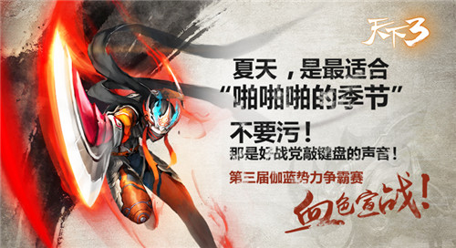 浪漫的相约怎能少了激情的战场相配?《天下3》第三届伽蓝势力争霸赛战火再燃,向天下英雄豪杰发起血色宣战。用“啪啪啪”的键盘操作秀出最性感的战场新姿势,还有专属动态称谓、王者专属坐骑“裂地犀尊”霸气来袭,你的荣耀与激情尽在伽蓝争霸!