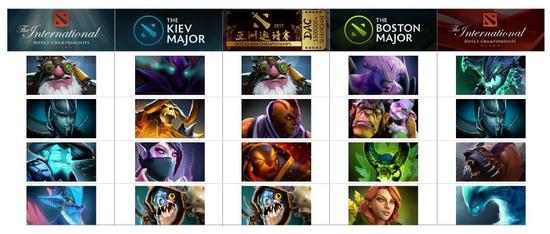 但职业选手的话还是要听的。为此,我按时间顺序统计了近一年来所有国际性大赛(TI6、波士顿秋季特锦赛、亚洲邀请赛、基辅春季特锦赛、TI7)的数据。