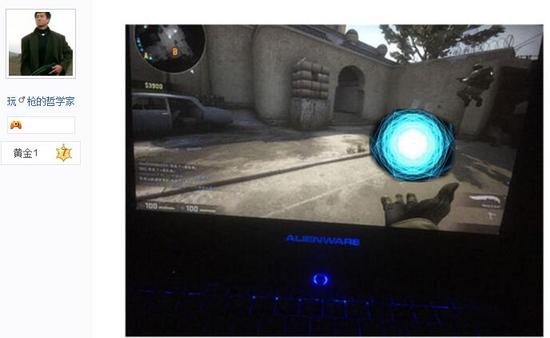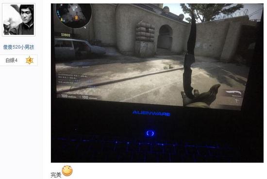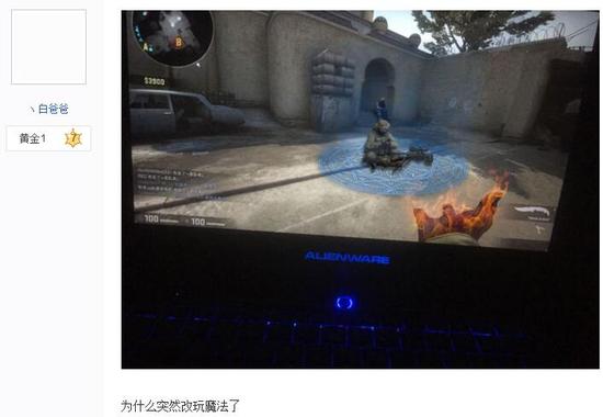 弯刀的立刀动作路人哥应该是在游戏中偶然立起了刀,于是激动拍下屏幕,却没注意到一个队友入镜,还跳成了挫挫的动作,让人无法把目光集中到刀子上。然而不知无心还是有意,他不截图就算了,拍照还把醒目的电脑LOGO拍了进去,无形炫富,最为致命,给了吧友们一个玩梗的理由: