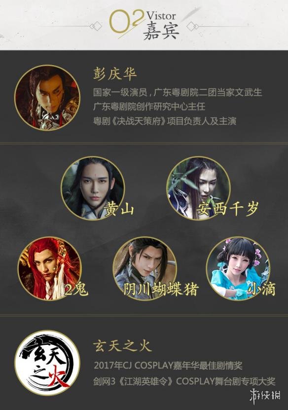 届时,主持人将采访抵达珠海的嘉宾、选手和幸运玩家,分享参观见闻,拉开庆生会序幕。2017 CJ COSPLAY嘉年华最佳剧情奖得主玄天之火团队现场演绎精彩剧目。国家一级演员、粤剧《决战天策府》主演彭庆华老师,御座的黄山,知名COSER安西千岁、2鬼、阴川蝴蝶猪、小滴等侠士熟知的嘉宾亦将登台。