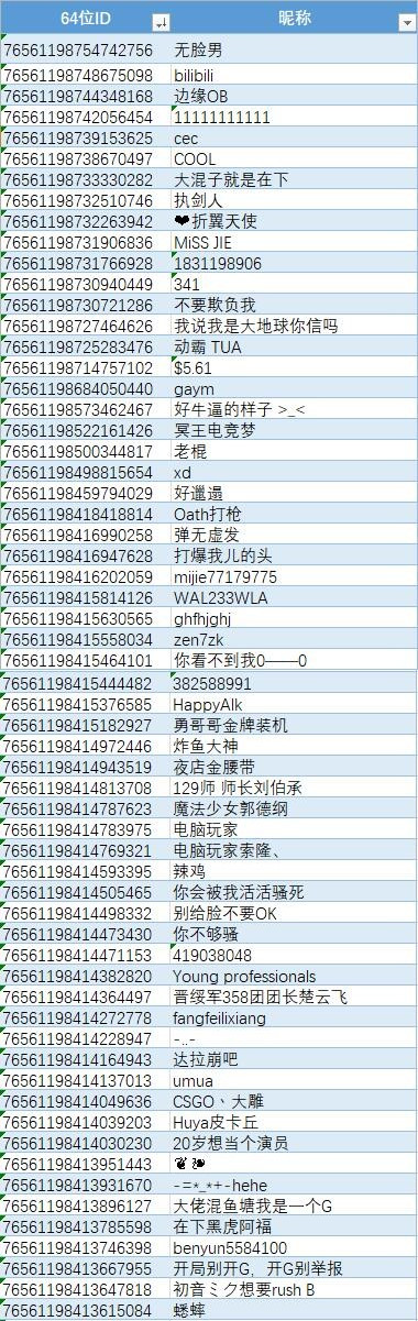 (在页面按Ctrl+F可查找玩家昵称及ID):