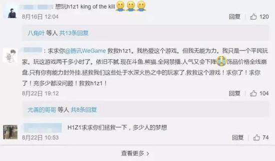 H1Z1玩家集体到“腾讯Wegame”的官方微博下留言刷屏,是从这个月的18号开始的。
