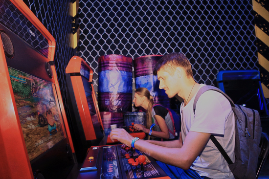 除了这几个比较有特色的展区之外,“手游乱斗区”则专供玩家现场开黑对战时下最热门手游《王者荣耀》;而在“老男孩部落”里则布置了大量的街机、FC小霸王、抓娃娃机以及一个超大的四驱车跑道供玩家回味童年;“赛事对战区”首日就举办了亚洲规模最大的“LSC-绝地求生”百人吃鸡现场海选赛,吸引到众多知名圈内主播和战队的参与;“主舞台”则为所有玩家们提供了明星主播互动、DJ表演秀等项目,是玩家在激烈对战之余放松娱乐的好场所。活动内容之丰富,游戏项目之多这在国内游戏展之中都是首屈一指。