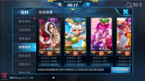 Miyako的常用英雄图,有没有发现什么?没错,最爱玩的英雄全是女性角色,这大概是妹子们的通病吧!好用不好用不重要,厉害不厉害不重要,关键一定要好看!不过Miyako这几个女性英雄的胜率都非常高,而且看这个盘数,可以判断出,漂亮的Miyako小姐姐,七夕肯定是一个人在王者峡谷过,想不想来偶遇一把?关注触手直播间5091082。