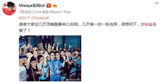 突然小编我又感觉到哪里不对,风队明明没有女粉丝的呀!在之前CJ活动现场照片上看到风队爆出的照片,整张照片上,若风被一大堆男生簇拥,根本看不到女生,可见若风是没女粉丝的。