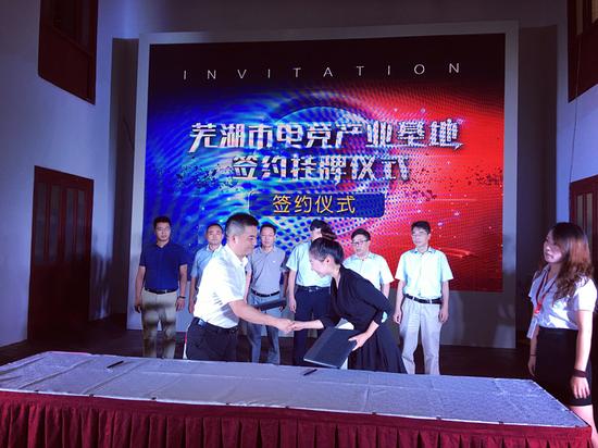 芜湖市电竞产业基地签约挂牌仪式上,诺亚控股、中国电信、中国移动等电竞产业资本项目、电竞产业支持项目的负责人也分别签署了合作协议。