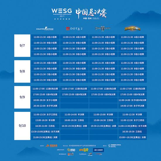 女子组炉石传说比赛将于9月9日现场完成抽签直接进入淘汰赛,当日决出最终进入决赛的两名选手,9月10日完成季军赛以及决赛。CS:GO女子组直接以循环赛形式决出四强,比赛将从9月9日上午10:00开始,当日将决出进入决赛的两支战队,9月10日完成季军赛以及决赛。