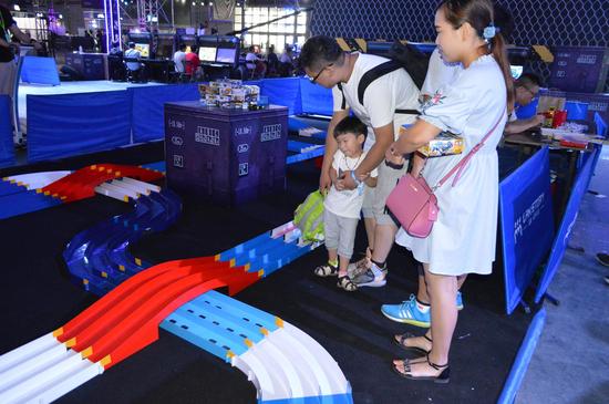 张先生告诉我这是他小时候最爱玩的游戏,工作之后很少有机会再玩游戏,但平时喜欢看直播,知道战旗要办这场活动后,趁周末带着侄子一起回忆下童年。不过现在孩子的童年可以说是五颜六色,很快他就对《超级玛丽》失去了兴趣,目光投向了四驱车。