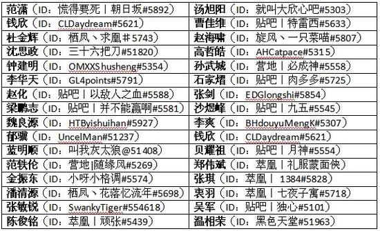 选手名单如下: