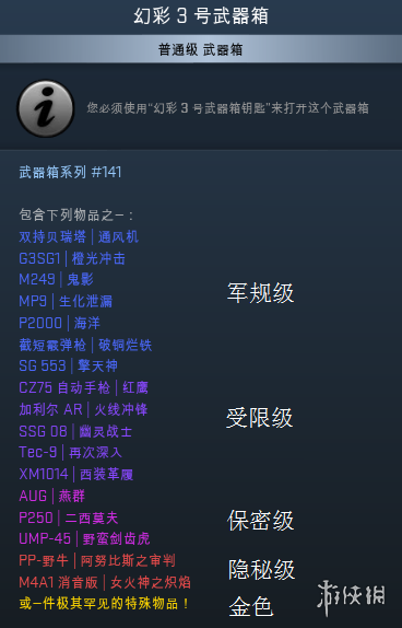应文化部《关于规范网络游戏运营加强事中事后监管工作的通知》的要求,公布CS:GO随机抽取类物品概率如下: