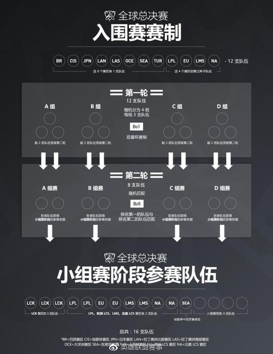 小组赛抽签仪式则会决定全球总决赛12支直接晋级小组赛阶段的队伍分组。以下是获得小组赛阶段直邀资格的种子队伍:来自韩国赛区一号二号三号种子的队伍,来自中国LPL赛区、欧洲LCS赛区、北美LCS赛区、LMS赛区的一号二号种子队伍,以及通过季中冠军赛的优异成绩直接获得小组赛阶段名额、来自东南亚赛区一号种子的队伍。 这12支队伍会和入围赛阶段获胜的四支队伍一起进入小组赛阶段。也就是说,在小组赛抽签仪式上,总共有16支队伍会分配到四个小组中去,每组四支队伍。