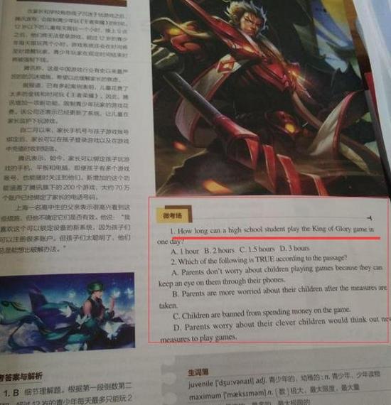《王者荣耀》登上教材?近日,网上有玩家曝出几张截图,展示了《王者荣耀》登上英语杂志的实拍照片,而且还是高考版的教材,这应该是王者荣耀被当做英语教材的第一例。