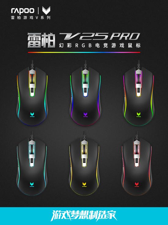 雷柏V25PRO幻彩RGB电竞游戏鼠标承载着V系列专注、专业的态度,以全“芯”的姿态展现V-PRO的独特魅力,让玩家远离后顾之忧,纵情享受游戏,实现电竞梦想。