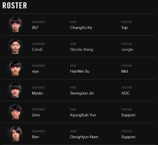 龙珠:除了夏季赛五名首发冠军阵容外,还带了一名替补上单。