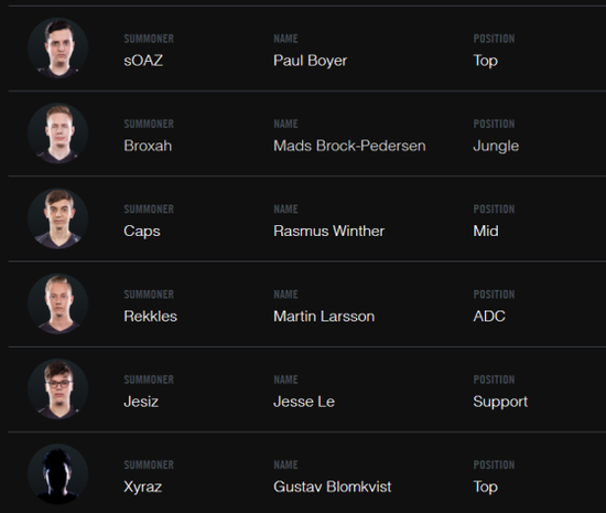 G2:作为欧洲的一号种子这次的首发名单还是MSI的亚军阵容。