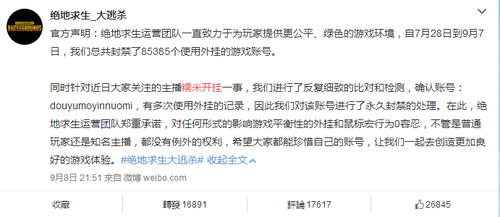 事情发展至此,不管最终事情是否还会再有逆转,当下“吃鸡”游戏中挂逼横行的乱象问题已经被推上风口浪尖,居高不下的外挂也不断影响着普通玩家的游戏体验。与此同时,该事件也引发了一系列连锁负面效应,由于当下外挂形式错综复杂,普通的吃瓜群众很难判定其他人是否使用了外挂,这也使得不少拥有真正实力的主播遭到了来自各种层面的质疑。