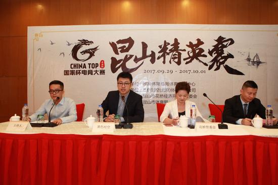 2017年9月19日,由国家体育总局体育信息中心主办,黑色时空(北京)体育有限公司承办的“国字号”世界级综合性电子竞技赛事“2017 CHINA TOP国家杯电子竞技大赛昆山精英赛”发布会在昆山花桥举办。发布会以“精英之战、首战昆山”为主题,正式发布了“2017 CHINA TOP国家杯电子竞技大赛昆山精英赛”的赛事情况,昆山花桥经济开发区管委会副主任王建芬、昆山市体育局副局长孙列平、黑色时空(北京)体育有限公司董事长秦袁、总裁董恺,以及各路媒体代表共同出席发布会。