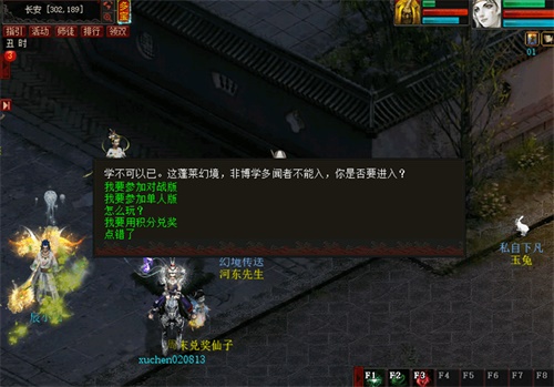 听闻只有博闻强识、别具慧眼之人,方可通关蓬莱幻境。活动期间,诸位玩家可前往长安城找到NPC“河东先生”,进入幻境一试才气文心。幻境分为两个版本,分别是对战版(需与其他玩家匹配)和单人版,每个版本均有3关,每关限时180秒,完成相应事件,可得经验奖励和积分奖励,可在河东先生处兑换低阶和中阶文心鱼。