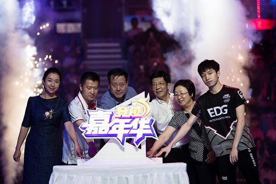 伴随着VCR与宣传片,主持人来到了舞台中央,竞迹嘉年华正式开始。紧接着与沙画表演一同登场的,就是观众们期盼已久的四支职业战队——EDG、OMG、DAN和Snake。20名职业选手来到台前一一亮相,让观众们大饱眼福。而在领导致辞结束后,被嘉年华邀请的2位明星嘉宾以及13位人气主播也走上了舞台。