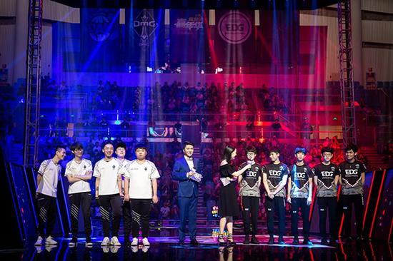 除了嘉宾代表队的精彩表演外,职业战队为我们贡献了多场激动人心的实力对决。不过,作为活动的一部分,职业战队也都放下了往日的包袱,拿出了平时难得一见的英雄,战的既开心又激情。首局,Snake在大虫子的带领下拿下取得了对DAN的首胜。而后,OMG居然在比赛中拿出了提莫——这也让观众席也爆发出了热烈的掌声。尽管阵容看上去有些滑稽,但OMG的实力还是不容小觑。最终,OMG在人头落后的情况下凭借着大龙团战的胜利完成了一波直捣黄龙,将EDG斩于马下。这跌宕起伏的剧情,真是让人过瘾。
