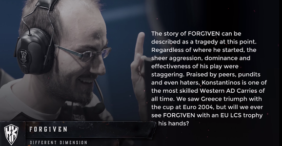 此时我们可以说,Forgiven的故事就是一个悲剧。(个人觉得他经历应该用可惜这个词。不过文中用的tragedy就不改了。)他拥有着犀利的比赛风格,能主导比赛走向。他的支持者,专家,甚至是讨厌他的人都对他的才华赞不绝口。他是西方历史上最出色的ADC之一。我们看到了希腊在2004年拿下了欧洲杯的冠军,那么我们能有一天看到forgiven举起LCS的奖杯么?