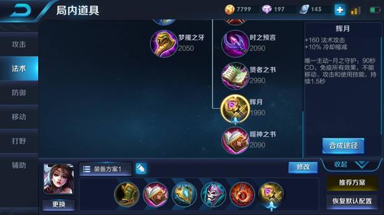 辉月:+160的法术攻击,10%的技能缩减,主动技能关键时候可以逃生!