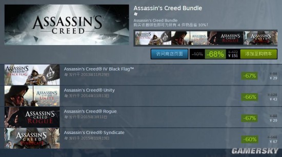 《刺客信条》系列游戏特惠Steam商城促销地址:点击进入