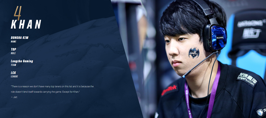 这份榜单,并没有很多上单选手出现,因为他们往往不是队伍的Carry点,不过Khan是个例外。