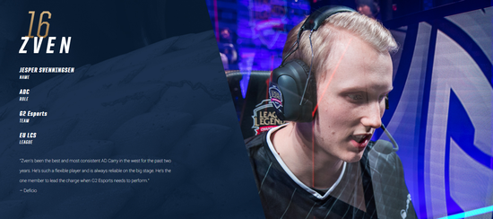 过去两年来,Zven都是西方世界里最优秀最稳定的ADC。他很有灵性,而且在大赛上非常可靠。当G2需要出色的表现时,他将带头冲锋。