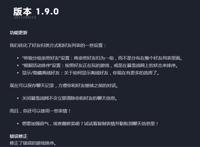 国服战网昨天进行了1.9版本更新,增加了聊天记录自动保存和发送emoji表情等功能。根据美服的官方蓝贴,聊天记录可以保存28天。