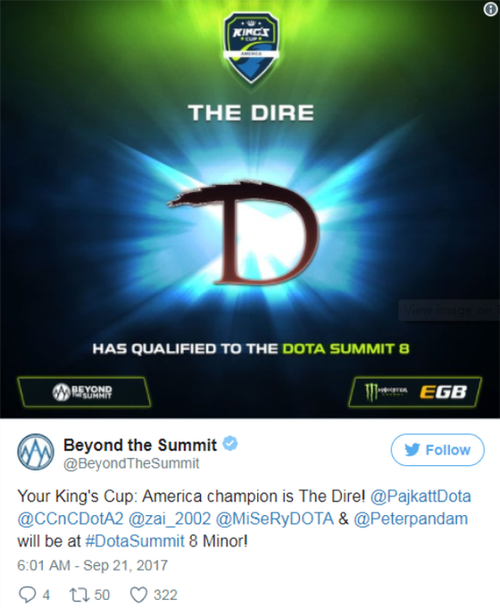 你们的“国王”杯,The Dire 成功夺冠。在接下来的DS8上再见!