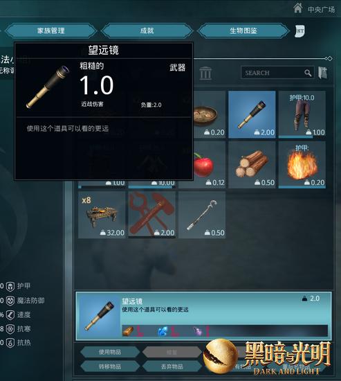 最近大火的跳伞求生游戏中,四倍镜八倍镜都是“吃鸡利器”,生存魔幻沙盒游戏《黑暗与光明》在近期更新的版本中也增加了降落伞、望远镜等道具。《黑暗与光明》中的“吃鸡神器”并不靠捡,而都要靠玩家自己搜集材料来一件件的制作,所以更加珍贵。当然了,物有所值,使用的有效期也是远远高于吃鸡的。