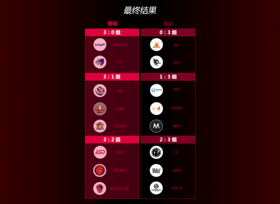 经过瑞士制四个比赛日的激烈交火,SL i上海邀请赛亚太区预选赛八强已经全部出炉!他们分别是:FG、MVP.PK、VG、EMP、Eclipse、LGD、5Power以及BOOT.ds。
