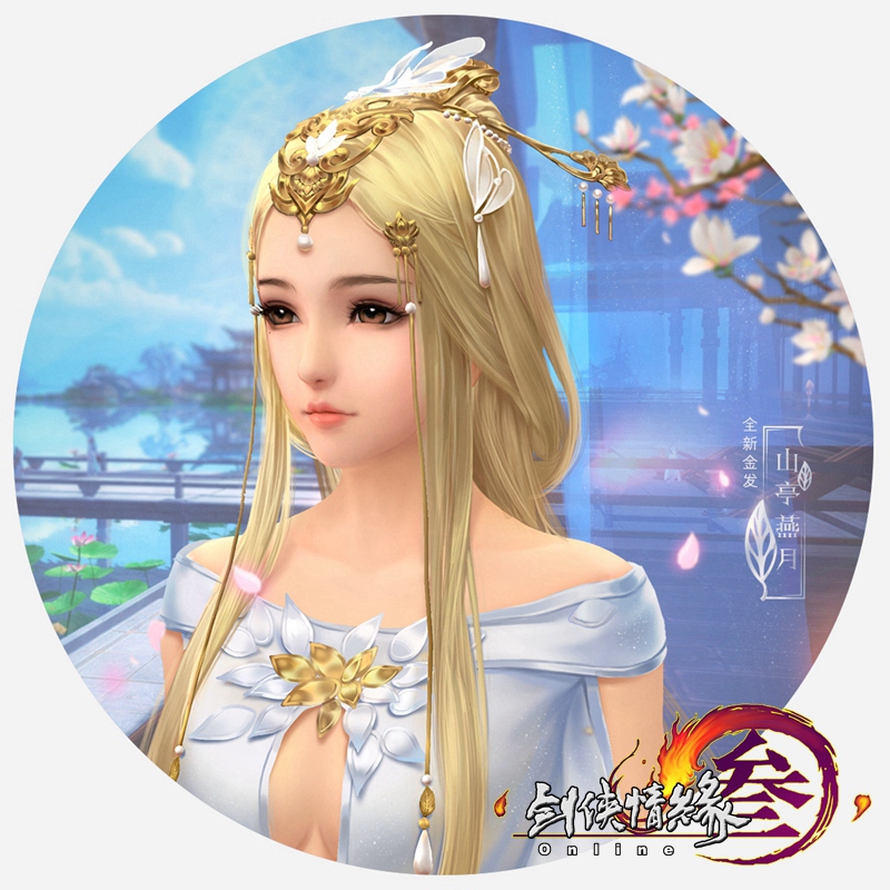 2017全新中秋金发“山亭燕月”,经过大唐顶尖造型大师们的艺术定制,在将侠士璀璨光泽的金色发丝重新梳理打造之后,辅以合浦珠、鲛绡纱、鎏金钗等珍贵饰品妆点,融合东西方美学特色,将端庄、典雅、活泼等诸多元素融为一体,为所有侠士呈现出一股绚丽无比的异域风情。