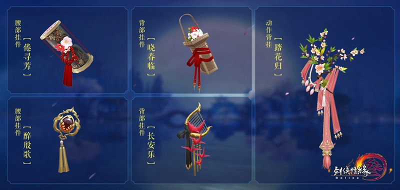 中秋庆典开启后,9月28日7点至10月19日7点,侠士参与充消活动,还可根据充消金额获得获得腰部挂件“倦寻芳”、背部挂件“晓春临”、腰部挂件“醉殷歌”、背部挂件“长安乐”奖励。还有全新的动作背部挂件“踏花归”,使用后可让侠士在空中踏花轻舞,绝对不容错过!同时,9月28日7点至10月2日7点,侠士全场消费还有150%积分回馈奖励!