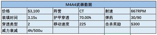 其他的缺点还有换弹时间,M4A4需要3.15秒,而AK-47只需要2.5秒;M4A4的威力衰减为4%/500u,即每500单位距离,伤害衰减4%,相比之下M4A1-S仅为1%,而AK-47又有高额的基础伤害来弥补衰减;M4A4的穿甲比例为70.00%,落后AK-47的77.50%;还有两者之间$400的价格差距,这也是一颗烟雾弹或者两颗闪光弹的价格。