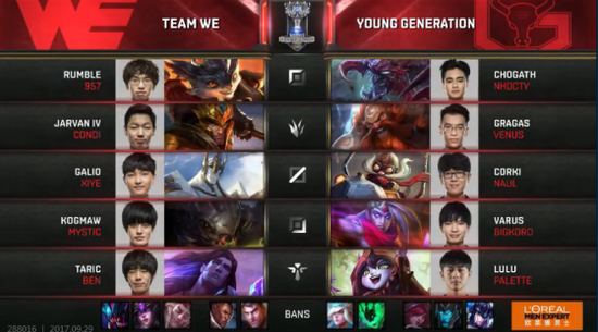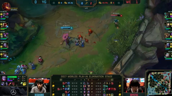 S7世界总决赛淘汰赛第二轮,LPL三号种子WE战队和YG的BO5对决。