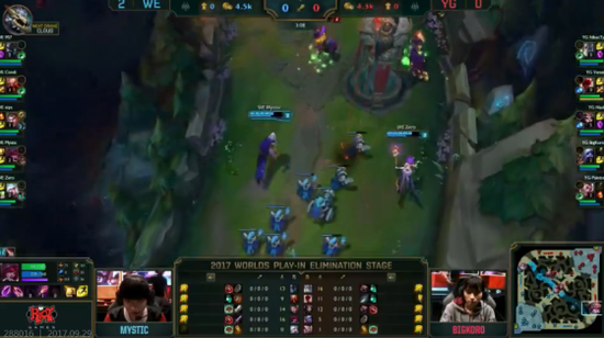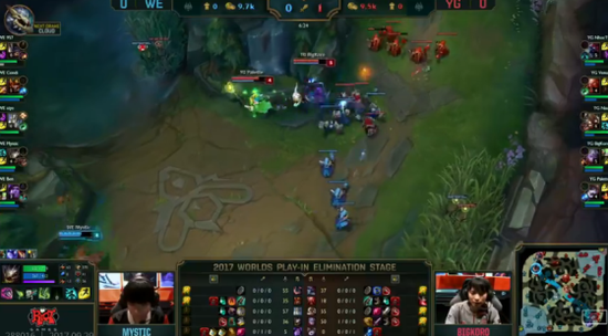 过到了中期,WE稳住了连续破掉YG所有外塔,把经济劣势全部追了回来。