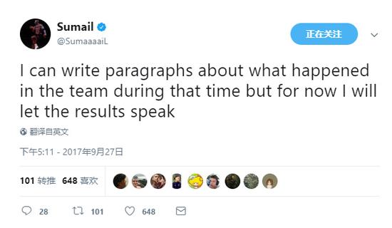 “Sumail:老子不服!我能写一大段话来反驳PPD,我要曝光当时队内真实情况!而现在砍来根本没必要,看看EG的结果吧。”