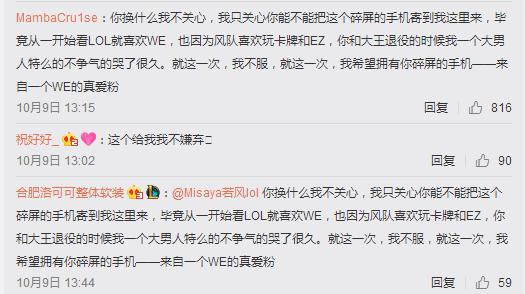 不过,机智的网友们的套路却是更胜一筹,许多网友在风队的微博下面回复,低价收购碎屏手机,甚至还有人用出了“深情”套路,就是想骗到若风的手机。