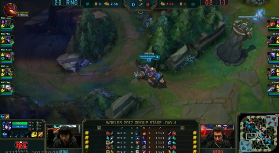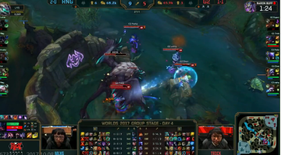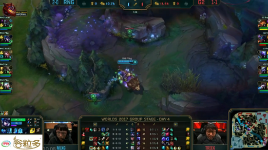 随后RNG开启了自己的拖战模式,拖到Uzi老鼠的三件套,尽管G2非常想进攻,但是他们根本无从下手。最终RNG完美的拖到老鼠三件套,比赛进入了RNG的节奏,G2开始拖战。不过RNG就是RNG,Uzi在直接绕后输出打出爆炸伤害击杀对面四人后拿下高地塔。