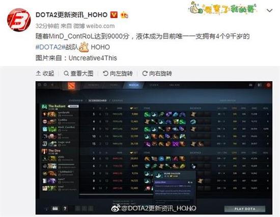 昨天HOHO在微博发布了一条消息,TI7冠军队伍Liquid的三号位选手MinD_ContRoL天梯积分达到了9000。