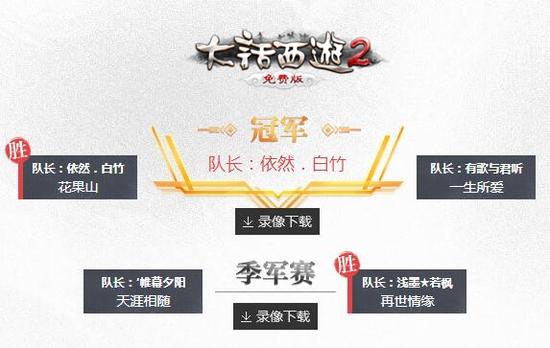 在这场最顶端的赛事中,在这个最荣耀的舞台上,128支顶尖强队一决高下,历经激烈角逐,《大话西游2免费版》天梯巅峰战2017秋季赛的冠亚季殿军火热出炉,他们分别是: