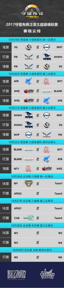 2017守望先锋APAC泛亚太超级锦标赛赛程图如下: