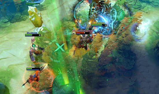 关于电狗这个英雄,熟悉LGD和OG的玩家都不会对他感到特别陌生。作为一个核心,电狗可谓是“神龙见首不见尾”。大部分电狗都不会让对手发现他的真身,而高手则会让对手失去在正面与电狗一较高下的信心。游戏开局,牛头杀鸡得手,VG感到了一股凉意。接着,Zhou神口中的“巴西DOTA第一人”4dr在中路与Ori对线不落下风。1分钟刚过,电狗配合牛头与双头龙的控制接力拿下了大圣的一血。而对于老11来说,一血仅仅是“表演”的序幕。5分钟,大圣再度死于电狗之手。7分钟不到,老11又被电狗送回了泉水。对线期三连死,已经让人嗅到了一股崩盘的味道。