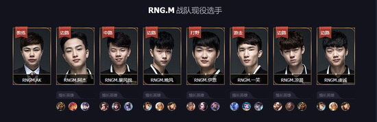RNG.M皇族战队正式组建于2017年3月,虽然成立时间较短,但是凭借强大的综合实力,在2017年王者冠军杯中挺进半决赛四强,拿下TGA四月月赛冠军,并且以WGC精英赛总决赛冠军的身份进入KPL预选赛,随后又拿下2017年KPL秋季赛预选赛双败淘汰赛胜者组冠军晋级《王者荣耀》顶级赛事——KPL。