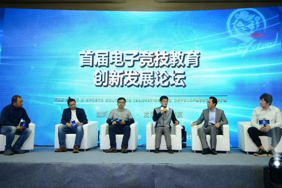 《电子竞技教育创新和发展》圆桌讨论座谈环节,嘉宾从左往右依次为: